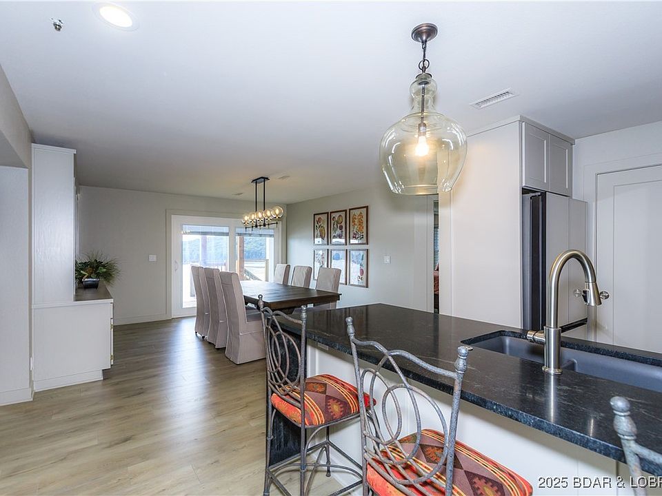 This stunning first-floor 6-bedroom, 4-bath condo has been fully remodeled from top to bottom! Updates include new cabinets, doors, LVP flooring, two HVAC units, two water heaters, new appliances, and all-new furniture and bedding. The modern kitchen features a granite waterfall island, two refrigerators, and a pantry. Three bathrooms feature walk-in showers and one has a tub/shower combo, all with floating vanities. Enjoy the comfort and privacy of two master suites with access to the expansive deck! All on one level, this condo is incredibly spacious, offering plenty of room to relax or entertain. Stairs lead down to your 12x30 boat slip, pet-friendly green spaces, and expansive Lake of the Ozarks views. Located on a quieter arm of the lake—perfect for fishing, boating, kayaking, and coving out. Community amenities include a pool, clubhouse with workout room and kitchen, firepit area, and playground. Accessed through Lake of the Ozarks State Park, this condo offers the perfect blend of privacy, luxury, and lakefront fun! This unit is a great investment opportunity and/or the perfect family getaway. Dreams to Reality! Call Today!