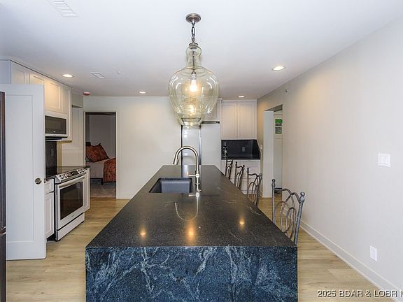 This stunning first-floor 6-bedroom, 4-bath condo has been fully remodeled from top to bottom! Updates include new cabinets, doors, flooring, two HVAC units, two water heaters, new appliances, and all-new furniture and bedding. The modern kitchen features a granite waterfall island, two refrigerators, pantry, and all newer appliances. Three bathrooms feature walk-in showers and one has a tub/shower combo, all with floating vanities. Two master suites! Durable LVP flooring flows through the main living spaces with carpeted bedrooms for comfort. All on one level this condo is so spacious. Enjoy lake living at its finest from the large deck with stairs leading down to your 12x30 boat slip, pet-friendly green spaces, and expansive Lake of the Ozarks views. Located on a quieter arm of the lake—perfect for fishing, boating, kayaking, and coving out. Community amenities include a pool, clubhouse with workout room and kitchen, firepit area, and playground. Accessed through Lake of the Ozarks State Park, this condo offers the perfect blend of privacy, luxury, and lakefront fun! This unit is a great investment opportunity and/or the perfect family getaway. Dreams to Reality! Call Today!