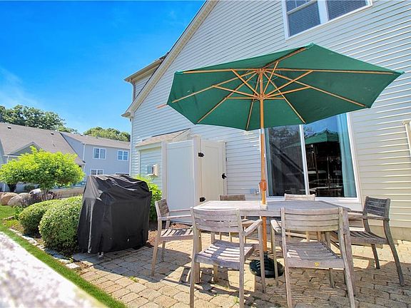 Pristine 2 bed, 3 bath townhouse located in the highly sought after Dunn's Corners area. Only minutes from Westerly beaches and all the amenities Westerly has to offer. This home's gleaming hardwood floors throughout are complemented with a serene color palette inviting comfort and relaxation. The first floor features a large kitchen with cherry cabinets and stainless steel appliances and tucked down the hall is the first of 3 full baths. The kitchen opens into a dining area and flows into a family room with a gas fireplace ensconced by a wood mantle. The dining area provides access to a private patio surrounded by beautifully landscaped grounds and is equipped with an outdoor shower to rinse off after a day at the beach. The second level offers a generous master bedroom with an expansive walk in closet and full bath with a beautiful jacuzzi tub. The second bedroom is also very spacious and features an en suite full bath and large walk in closet. The fully finished basement expands this home's living space and offers another place to relax or entertain family and friends. Laundry located on the second floor, central air and a 1 car garage add to this home's amenities. You can't beat this ideal location where you can enjoy the changing seasons of New England without having to think about scheduling time in your day to shovel snow, mow the lawn, or rake leaves. Great opportunity for either primary residence or vacation home.