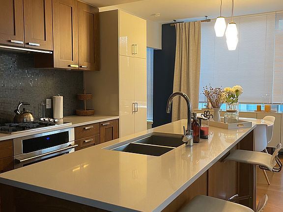 Exquisitely finished with top-of-the-line luxury materials, this residence features sleek quartz countertops, engineered hardwood floors, and no expense spared in the premium finishings throughout. The spacious open layout is flooded with natural light, creating an inviting and vibrant living space. The master suite boasts an ensuite with a separate shower and tub, providing a perfect sanctuary after a busy day.