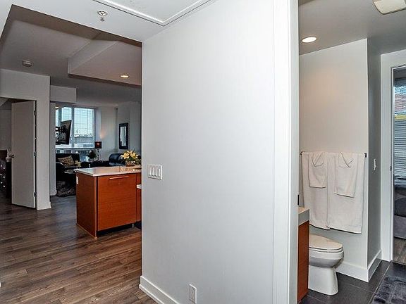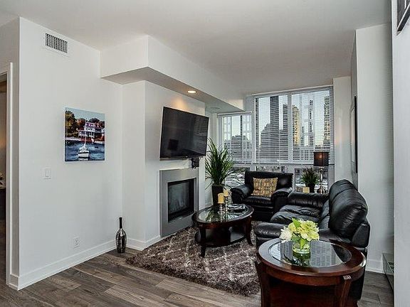 In the heart of downtown Calgary, Waterfront is the newest exclusive condo building located in the elite Eau Claire neighbourhood. This upscale 2 bedroom, 2 bathroom unit comes complete with a gourmet kitchen, stackable in-suite washer & dryer, climate control heating/air conditioning, dishwasher, microwave, and balcony and is pre-wired for cable and high-speed Internet access. There are rich mahogany hardwood floors and cabinetry and floor-to-ceiling windows that allow the sun to pour in throughout the day. Rent includes all utilities, basic cable TV, WiFi and one underground secure parking stall.