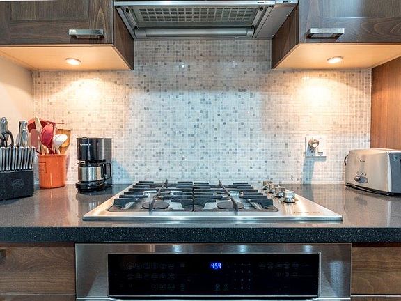 Gourmet kitchenAir conditioningStainless steel appliancesQuartz countertopsGas stove top