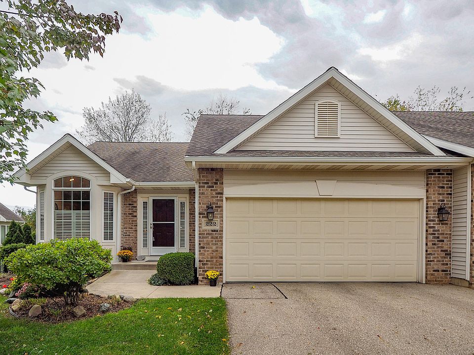 Redstone Farms- Beautiful condominium with private setting overlooking golf course, end unit with open floor plan and vaulted ceilings, living room with fireplace and adjacent formal dining area, sun room/den opening onto deck, kitchen with informal dining area and pantry, large master suite with walk-in closet, office/fourth bedroom, large family room in lower level plus two additional bedrooms, three full baths, main floor laundry, two car attached garage, extensive landscaping, quiet and convenient Westside location, monthly fee $220, one time buy in fee $440, Kalamazoo Promise, exceptional value!