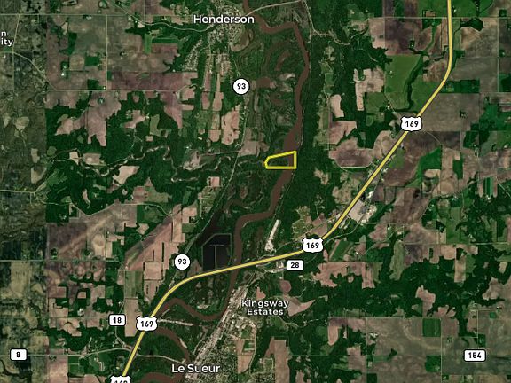 This +/- 10-acre property is located at the intersection of the Rush River and the Minnesota River, just over two miles south of the bridge adjacent to Henderson. The property is landlocked with no public road frontage or easement access. However, there is a relatively close boat access area on Minnesota State Highway 19, just outside of Henderson along with a second access owned by Le Sueur County which is even closer to the property. With two access areas this close, this is one of the more convenient landlocked tracts you may come across.