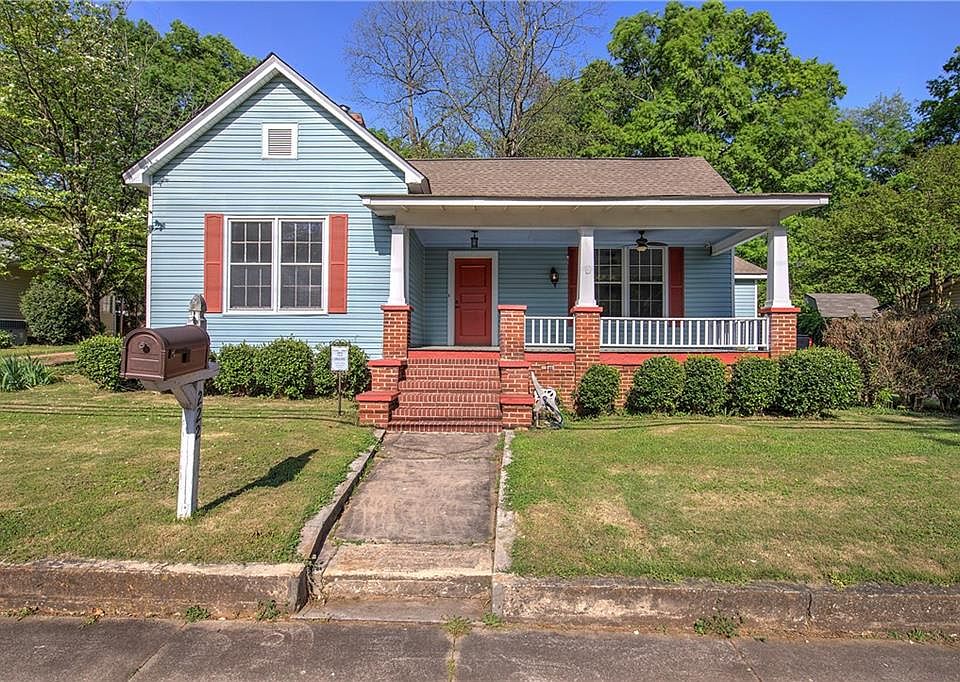 Welcome to this charming Historically registered home originally built in 1908 with some additions from early mid-20th century. If you are comfortable residing in a bastion of early twentieth century ambience while walking through grand rooms from yesteryear, you will be attracted to this lovely property. More importantly, this home is nicely centered in a coveted area of "Old" Cartersville, just a short shady stroll to all the historic downtown destinations, including dozens of upscale restaurants, Cafes, Microbreweries, bakeries, theaters, and so many specialty shops. You will appreciate original hardwood floors rolling through most of the house, while ten-foot ceilings tower over all the important rooms. The oversized grand foyer will greet all your guests in regal style. In the rear of the house, a large bright room added in the early 1940s has been totally restored. It is ready to be the perfect location for a new custom kitchen, adjacent to the current dining/kitchen area which should be restored as a grandeur formal dining room. Notice the fireplace in this spacious room. The Home has a newer, updated electrical service as well as a recently replaced HVAC system. Two rear exterior doors lead to the large patio looking across the large hardwood shaded back yard.