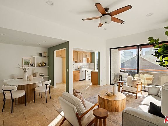 Little Tokyo PENTHOUSE CONDO! This unit belonged to the builder of the condo because he saved this one for himself! And it's easy to see why: it has the best views in the building of the downtown skyline. It's perched at the very top with no one above you. It offers sweeping views with an unmatched sense of privacy. Inside, enjoy TWO oversized bedrooms, TWO beautifully updated bathrooms, and brand-new kitchen, bar, and bathroom cabinetry designed for both style and function. Natural light floods the open layout, highlighting the home's clean, modern finishes and spacious flow. Enjoy gorgeous views of the sunset from the living room or while relaxing on the balcony. The building itself is a hidden gem straddling the border of Little Tokyo and the Artist's District. Residents enjoy access to a fully equipped gym, a tranquil koi pond courtyard, dry sauna, and peace of mind with 24/7 guarded front desk security. Two dedicated covered parking spaces in the gated garage add convenience to the lifestyle. Just steps from the Artists District, Little Tokyo and downtown LA's best dining and culture, this penthouse combines luxury living, rich history, and an unbeatable location. A truly one-of-a-kind opportunity.