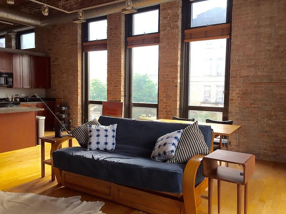 BEAUTIFUL BRIGHT CORNER LOFT W/EAST & SOUTH EXPOSURE-- HUGE 1 BEDROOM / 1.5 BATHROOM UNIT IN HISTORIC DAILY NEWS BUILDING. TRUE LOFT W/ 15FT CEILINGS -- EXPOSED BRICK & DUCT WORK. HDWD FLOORS THROUGHOUT ENTIRE UNIT. GAS FIREPLACE -- BALCONY -- MASSIVE KITCHEN W/LARGE ISLAND FOR ENTERTAINING. HEAT INCLUDED,NEAR RESTAURANTS -- BUS -- EL LINES -- HIGHWAYS. HEATED GARAGE PARKING INCLUDED.April 1st. $350 MOVE IN FEE. Listing Agent is Licensed Il Realtor