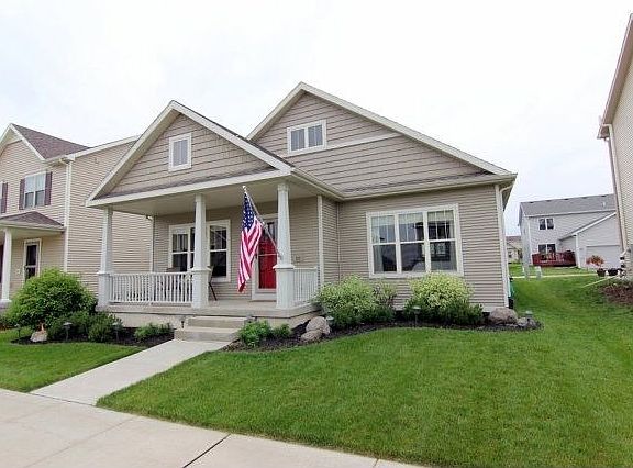 This picture-perfect, low-maintenance home is on a quiet east-side Madison street. Enjoy relaxing on the comfortable front porch or the deck in the fenced yard. The beautiful great room has wood floors and an attractive fireplace. Spacious kitchen features stainless appliances and a tile floor. The laundry is conveniently located on the main floor near the kitchen. The basement has plenty of space for finishing, with the bathroom plumbing already stubbed in.