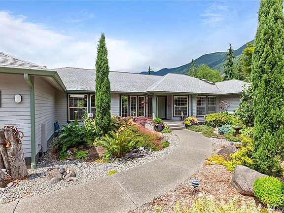 Take in the stunning Olympic Mt. views! A custom built home with main floor living incl. a beautiful master suite + guest suite w/ private deck & lounge area.Enjoy the spacious kitchen that opens to the great room as natural light shines throughout this immaculate home. A daylight basement offers full bed & bath with extra living space.Relax on the deck overlooking the mountain valley & gorgeous landscaping.2 car garage + a detached shop w/ RV parking. 10 min drive to local marinas & amenities!