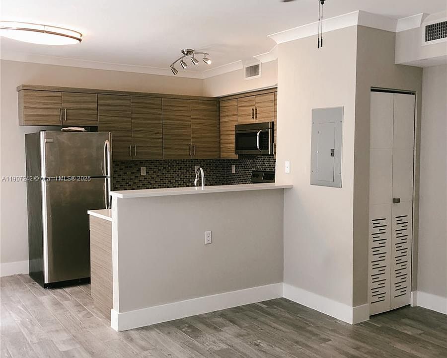 Move-In Ready 1/1 in the heart of the City Beautiful! Modern updated kitchen featuring SS Appliances, white quartz countertops, contemporary cabinets & sleek tile backsplash. Central AC, spacious closet, washer and dryer *IN-UNIT*! Ceramic wood-look tile throughout, chrome hardware, white crown molding. Plenty of natural light. First floor unit! Entire building has Hurricane Impact windows & doors, as well as 24-Hr Video Surveillance. Street parking only. 1 Pet allowed up to 35 lbs with non-refundable pet fee. Rent covers water, sewer, trash removal, pest control. Please TEXT ONLY for any questions. Please request showing via Showing Assist. Credit 650+. First Month Rent, Last month rent, $1000 Security Deposit.