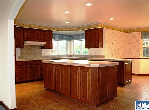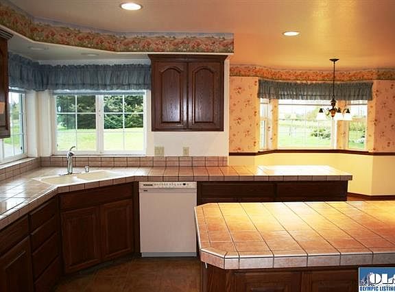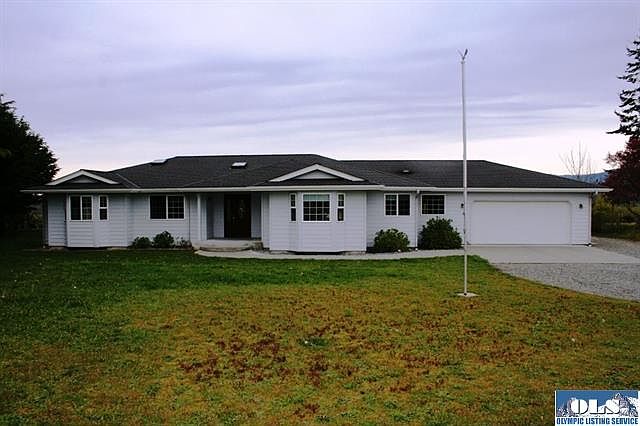 Well built three bed two and 1/2 bath home with Spectacular Panoramic view of the Olympic Mountains as well as the valley below. Large tiled kitchen with work island, built in oven, large pantry, breakfast nook, formal dining living room, Living room with propane stove and dramatic wooden ceiling, Large Master bdrm with huge walk in closet plus jetted tub and separate shower in master bath. All the southern exposure you could ask to enjoy the views. All the plus an over large 784 foot garage with work area.