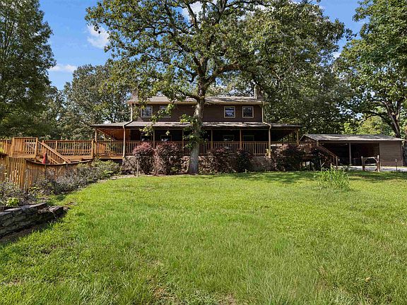 Looking for privacy, acreage, and the charm of a log cabin without the upkeep? This 5BR, 3BA home offers over 4,000 sq ft of modern living on 7.2 secluded acres, just 6 miles from the interstate and 10 minutes to shopping. Enjoy a wraparound porch, wood siding, and three wood-burning fireplaces. The main-level primary suite features oversized walk-in closets, with four additional bedrooms upstairs. A fully finished basement includes a large den, full bath, and private office. Outdoors you'll find a 24x50 barn with stalls, water, and electric; pasture fencing; a saltwater pool with updated pump and liner; and both a seasonal creek and pond. Updates include a new roof, AC, heat pump, and whole-home generator, plus an EV charging station. Two covered two-bay carports on both main and basement levels provide ample parking. No HOA and plenty of room between you and the neighbors. Space to homestead, keep animals, and enjoy your private retreat.