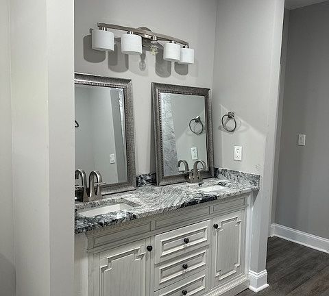 This 1500 SF studio suite has a bathroom equipped with a soaking tub, double vanity, and steam shower for a spa-like experience at home. LED Recessed Lighting throughout the home, provides energy-efficient and modern illumination. A private kitchen and laundry room provide space and functionality. The studio suite is furnished and offer a big screen TV, table, and sofa bed. A newly constructed private deck and entry way allow access to the upstairs apartment. This suite comes with garage access and utilities included. This home truly has it all-luxury, space, and smart technology. In between Newnan and Fayetteville this home is minutes away from I-85 and several shops, restaurants, and 2 hospitals.