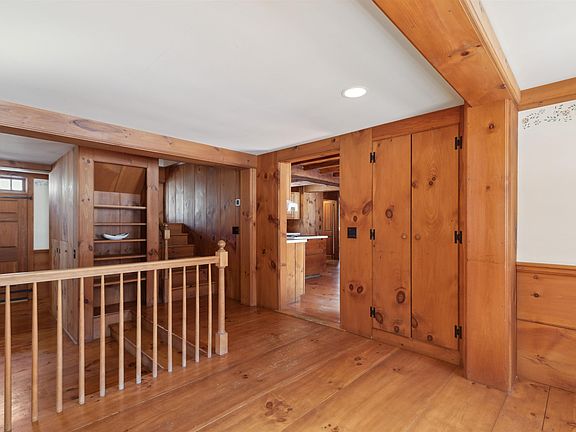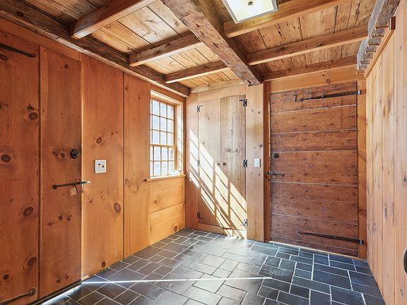 Nestled on 14.1 acres along a quiet and peaceful dirt road, this property boasts a unique history and timeless charm. Constructed from 1977 to 1979, this gambrel-style residence echoes the design of the Tavern in Machias, Maine, dating back to the 1790s. The meticulous craftsmanship shines throughout the home with antique lumber and bricks adding character to the post-and-beam structure. Step inside to discover a blend of tradition and innovation. A central masonry arch graces the staircase, incorporating six chimney flues. Radiant heating discreetly warms the ceilings, preserving the antique ambiance of the rooms. Shaker-inspired details, from hand-planed walls to framed raised panel cabinets, enhance the interior's rustic elegance. The home’s expansion in 1990 integrated additional living space, including an oversized three-bay garage while preserving the home's classic aesthetic. There is room for all including 4 bedrooms, an office/den, and many living spaces. Beyond the main house lies a charming guest cottage accessed by a separate driveway. It includes a kitchenette, bathroom, one bedroom, and living space with a propane heater. Outside, the landscape unfolds with mature fruit trees, rock gardens, and vibrant flora, creating a picturesque backdrop. From the twisted plum trees to the towering horse chestnut, every corner of the grounds exudes natural beauty and serenity. The convergence of two streams on the edge of the property fills the air with meditative sounds.