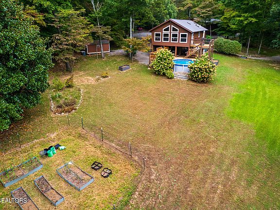 MOTIVATED SELLER!!!! Do not miss this beautiful, private log cabin on approximately 6.28 acres with amazing mountain views. This property has approximately 3 fenced acres, and boasts 2 bedrooms, an office, a beautifully updated kitchen, and 2 updated bathrooms with tile. The open floorplan features a living room that is big enough for entertaining and offers stunning views of the mountains. Power outages are not a concern as the whole house Generac generator conveys. On those hot summer days, you can relax in the pool or enjoy the beautiful Norris Lake that is just minutes away. All outbuildings have power. One is 16x9 for all your storage or workshop needs. The other is 15x10 and is insulated with a ductless HVAC system plus additional attic space for storage. The detached 4-car garage is 24x40. Behind the garage is water and septic for your RV. You will have an established garden and a chicken coop for a little off the grid living. Property is fenced with a remote gate at the main driveway and locked gates at the 2nd and 3rd driveways to protect your privacy. There is fiber internet from KUB at the property. Come, make this home your perfect oasis.