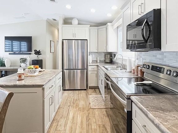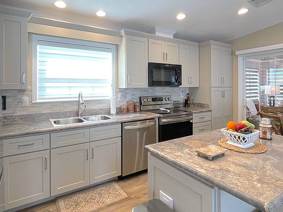 **This home offers great rental potential for extra income or seasonal stays. Sun Resorts and Residences-Ft Myers Beach, is one of the rare parks that welcomes Airbnb rentals - a huge bonus for owners!** Welcome to your dream home! This gorgeous 2-bedroom, 2-bathroom residence sits right on the lake in the highly sought-after Sun Retreats Fort Myers Beach community. Offered turnkey, this home features upscale, modern new furniture ready for you to move in and start living the Florida lifestyle. Step inside to discover an open-concept kitchen and living area, perfect for entertaining and everyday comfort. The kitchen boasts a spacious island, stainless steel appliances, and plenty of room for gathering with family and friends. You'll love the enclosed lanai, offering extra square footage and breathtaking views of the lake and spectacular evening sunsets. Throughout the home, new modern zebra model blinds add an elegant touch and complete the home's contemporary style. The primary suite features an en-suite bathroom, providing a private retreat at the end of the day. A guest bedroom is perfect for visitors, while the separate laundry room includes a washer, dryer, and added overhead storage for convenience. Step outside to your concrete patio overlooking the lake, the ideal spot to enjoy your morning coffee or host friends for sunset gatherings. This home truly has it all modern finishes, serene views, and thoughtful upgrades throughout. There's nothing left to do but move in and start enjoying your new lifestyle. Call us today to schedule your private showing!