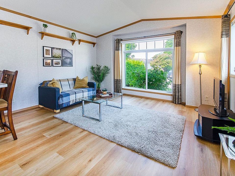 A Modem I Bed 1 Bath home in the Capilano Mobile Home Park. This rarely available 2012 model has a great open plan design with vaulted ceilings and lots of light. Heat pumps have recently been added so you are warm in the winter and cool in the summer. Brand new Luxury Vinyl Plank flooring throughout. This home was custom designed by the owner with extra insulation and built in cabinetry in every room to maximize storage. Enjoy watching the world go by from your deck. Walk to Park Royal Mall or Ambleside Beach. Only 15 minutes to Downtown Vancouver. Monthly pad rental fee of $960. No financing available. Must be 55+ to live here. No rentals permitted.