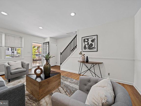 Welcome to this charming row home in a highly desirable area of Conshohocken. This property has just been fully repainted and offers brand new carpeting, making it move-in ready! As you enter, you are greeted by the inviting front porch, leading you to a large, open living room and eat-in kitchen area. The spacious kitchen features quartz countertops, a modern chandelier, and stainless steel appliances. The first floor also includes a large bedroom with brand new neutral carpeting, which can double as a cozy den, and an updated powder room. Fresh, neutral paint adorns the walls throughout the first and second floors, complemented by hardwood floors. Upstairs, you will find three additional bedrooms and a sun drenched bathroom with classic fixtures and subway tile. The lower level features a walkout basement with high ceilings, opening up to a shaded patio perfect for relaxing or hosting gatherings. The expansive, fenced in backyard is a rare find in Conshohocken, offering endless possibilities. This home is superbly located, backing up to Sutcliffe Park and within walking distance to the popular restaurants and shops on Fayette Street. With plenty of street parking and an easy commute to major roads, this home is ready for a loving new owner!