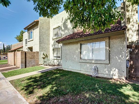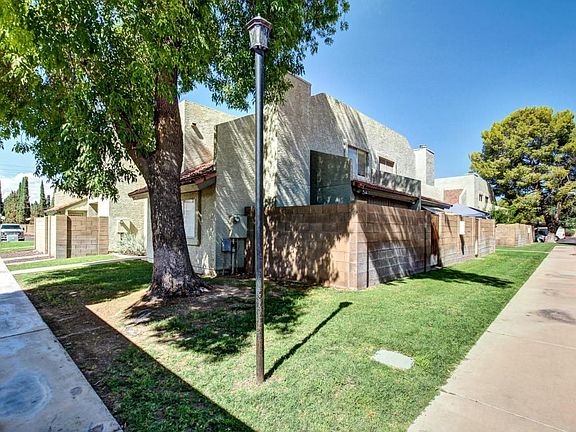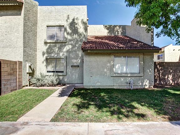 Charming Townhome w/2 bedrooms, 2 full baths PLUS a Loft. Great floor plan w/master bedroom on main floor boasting full bath, 2 closets & brand new carpet. Cozy up to the beautiful brick wood burning fireplace in Family Room. Dining has plenty of space for large kitchen table. Wide galley kitchen has stainless steel appliances and lots of storage. Separate Laundry room w/Washer & Dryer included. Arizona Room off of dining leads out to private patio. Second floor has full bath & Master size bedroom w/huge walk in closet & new carpet. Loft is great for office/den or easily make into 3rd bedroom as it already has closet. New carpet, toilets & hot water heater in 2017. Community pool just steps from your door & 2 assigned parking spaces! Close to A's Training Facility & so much more.