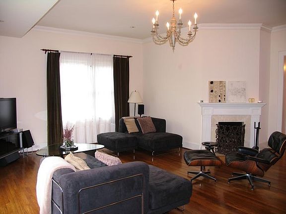 Cozy fireplacePrivate yardLush privacy hedgeBuilt-in buffetHardwood floorsLight-filled white kitchenGas range