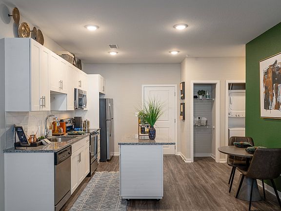 - Exterior features: , 9' ceilings, Automated parcel system, Balcony, Barbecue, Designer-inspired kitchens and bathrooms, European-style white cabinetry, Full-height white kitchen subway tile backsplash, Gourmet kitchen with granite countertops, Hardwood-style flooring, Movable kitchen islands *, Outdoor lounging spaces and water features, Pet Spa, Pet Washing Station, Stylish studio, one-, and two-bedroom floor plans, TV Lounge, Walk-in showers with glass doors *, Work-from-home internet cafe