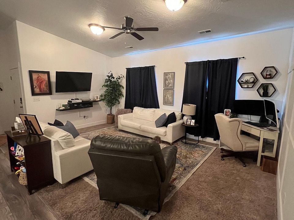 Perfect location minutes from I-15, shopping centers (Costco, Walmart, Smith's, and more), various restaurants and multiple gyms! This is 6 year old, pristine third floor condo with great views of the Utah lake and mountain ranges from a private balcony and with Quartz counters. As this is a third floor condo, you will have high vaulted ceilings, making it feel as open as a home rather than a condo! The unit has a laundry room with washer and dryer included! The community boasts large amounts of open grassy areas, 2 parks, and a great clubhouse/gym/pool/basketball court! You'll enjoy the open feel of the community, well taken care of amenities and great people.