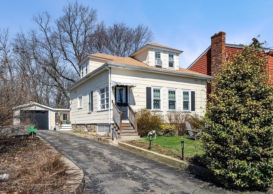 This beautifully maintained bungalow style single family is located steps from Foster's Pond and its serene beauty. The features of this adorable, sun filled, 3 bedroom home include a recently renovated kitchen with stunning granite counters, white shaker cabinets and stainless steel appliances. The primary bedroom is located on this main floor with the remodeled bath adjacent to, which can be closed off from the rest of the first floor with a sliding barn door for maximum privacy. The second floor of the home holds two bedrooms and an additional flex space which could be used as a play area or home office spot. The plumbing has been brought up to this level for potential of a second bath. This backyard is set up for all your entertaining needs with a patio area to grill, a free standing deck to gather with friends and a finished room attached to the garage in case of inclement weather during your Saturday soiree's. Bonus one car garage and additional off street parking.