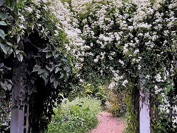 Just beyond Leesburg’s lively King Street, you’ll find a historic home with a garden spirit; where porches invite, perennials bloom, and everyday life feels like a retreat. Set on a quiet residential street, this timeless treasure sits just a block from downtown’s boutiques and restaurants, and nearly next door to the ever-charming Ida Lee Park. Stroll to First Friday festivities filled with music, art, and dining, or wander home to your private oasis, where lush landscaping, a storybook shed, and a broad composite deck promise peace and enchantment in equal measure. The exterior of this home feels like a page from a garden storybook. The .18-acre lot bursts with stunning landscaping that unfolds like an English garden, thoughtfully planted so that from February through September new blossoms appear in colorful succession. It’s truly breathtaking, and the original landscape design plans will convey to the next owner; a treasure for anyone who delights in nature’s artistry. Beyond the flowers, raised vegetable gardens invite yard-to-table meals, while a graceful fence and arbor frame the space with charm. An underground irrigation system keeps everything thriving with ease. The backyard is anchored by a spacious deck and paver patio, perfect for entertaining or simply soaking in the view of your private sanctuary. Just beyond, a large shed with metal roofing and full electricity feels almost like a whimsical cottage, ready to serve as a workshop, studio, or secret hideaway. Together, these spaces create an outdoor retreat as practical as it is enchanting. Inside, over 2,000 finished square feet wrap you in warmth and character. Original hardwood floors, two working fireplaces, and both front and rear staircases whisper stories of the past, while modern updates make life beautifully easy. The kitchen, fully renovated and gleaming with crisp white cabinetry, granite counters, and stainless appliances, makes staying in as delightful as dining out. It opens to a sunny dining nook, a cozy spot for morning coffee overlooking the yard. A formal dining room, anchored by its own fireplace and the original rear staircase, now serves as a warm gathering space. The living room, with its second fireplace, connects seamlessly; a welcoming space for conversation, comfort and togetherness. The main-level primary suite, newly created in 2018, is a retreat all its own with a private porch entrance. Its spa-like bath features river rock tile, updated fixtures, a multi-spray shower, and modern finishes throughout. A separate laundry room with a new pedestal washer and dryer, along with a foyer and gracious staircase, complete the main level with both practicality and charm. Upstairs, two generous bedrooms with plenty of closet space and breezy ceiling fans offer restful retreats. A refreshed full bath and an airy landing add both function and charm. Behind the beauty, this home is just as sound. Dual-zone HVAC with newer units, a replaced water heater, public utilities, natural gas, and high-speed internet ensure modern convenience. This home is more than walls and windows; it’s a charming slice of life in Historic Downtown Leesburg. Here, small-town character blends with endless activities to create a lifestyle that feels both lively and peaceful, timeless yet refreshed, and every bit as magical as it is real.