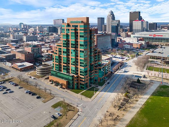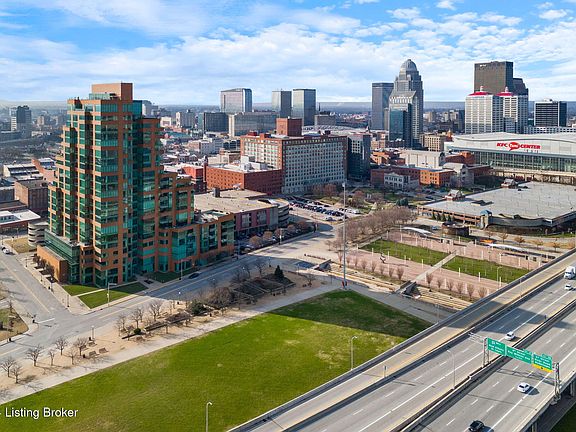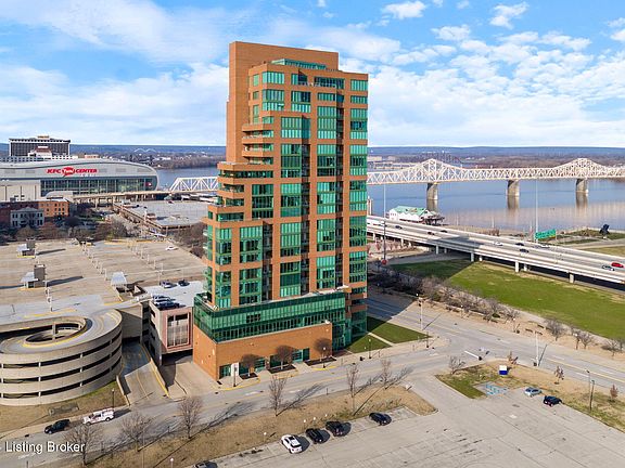 Riverfront 5th floor luxury condo. An upholstered foyer leads to the living space with elegant herringbone design flooring and floor to ceiling windows. The sitting area has designer built-in cabinetry. The second gathering area leads to the spacious covered outdoor terrace overlooking the river and Waterfront Park. The kitchen has premium lacquer cabinetry, quartz counters, dimensional ceramic backsplash, and an island with a breakfast bar. The dining area has a built-in bar with serving counter. The primary suite has a tub and walk-in shower. The hall bath has a walk-in shower and is shared by the 2nd bedroom and office which can also be used as a guest room. Tucked in the corner is a large laundry/utility closet and half bath for guests. Gated garage with two numbered parking spaces. Waterfront Park Place is a modern secure luxury high-rise with spectacular river and cityscape views. The building is professionally managed onsite and staffed 24/7 with a reception/security desk in a large attractive lobby with secure entrances and elevators. There is an attached secure parking structure, rooftop pool and outdoor lounge area, fitness room, bicycle room, community room, fitness center, mail room, and a large party room.