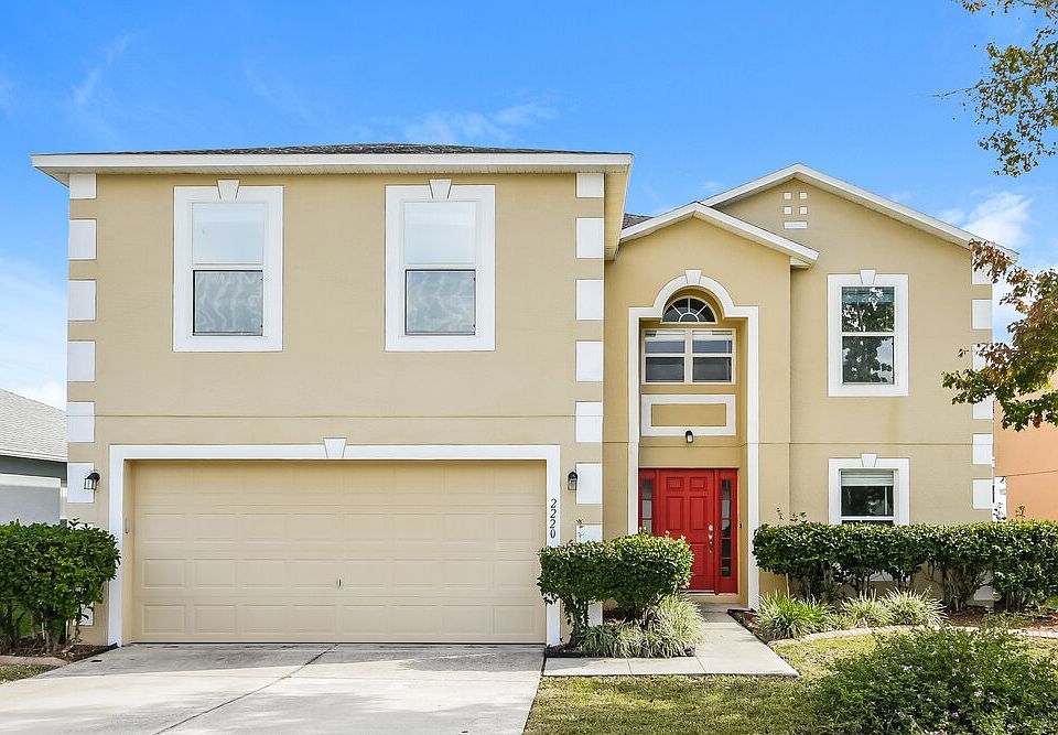 Enjoy plenty of space to spread out when you move into this 2,896 square foot rental home with four bedrooms and two-and-a-half bathrooms in Leesburg, FL. Modern wood-look flooring welcomes you inside the living room, where you'll find a vaulted ceiling and attractive arched windows and doorways. The kitchen is spacious with two storage closets and a center island. Home cooks will love the kitchen's stainless-steel appliances. Upstairs, the primary suite is move-in-ready with white window blinds and a lighted ceiling fan. Check out the luxurious en suite bathroom, which has dual walk-in closets, a garden tub, and a walk-in shower. Outside, relax in the fresh air on the screened-in back porch. Come take your tour soon!