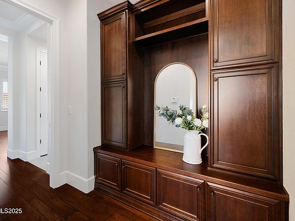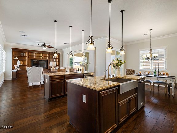 This Regency at Presidio offers turnkey luxury, thoughtful upgrades, and effortless 55+ living in one of Reno's most desirable active-adult communities. With 2 bedrooms, 2.5 bathrooms, and 2,223 square feet, this home blends style, comfort, and convenience in a layout designed for both daily living and entertaining. Step outside to experience three separate, beautifully landscaped outdoor spaces: a private courtyard for morning coffee, a side patio perfect for intimate gatherings, and a backyard ideal for relaxing or entertaining. Each space is low-maintenance and thoughtfully designed to maximize privacy and enjoyment, while keeping you just steps from the clubhouse and community amenities, including fitness, walking paths, and social activities. Inside, the home is filled with upgrades that would cost tens of thousands to replicate today. Hardwood floors flow throughout the main living spaces, complemented by custom cabinetry, built-ins, and premium storage solutions. The kitchen features soft-close cabinets, full-extension drawers, and the KitchenAid Gourmet Package with built-in refrigerator and wine fridge, making hosting effortless. The primary suite is a private sanctuary, complete with frameless rain-style glass, solar tube lighting, and upgraded finishes, while bathrooms and living areas reflect quality craftsmanship and attention to detail throughout. Technology and comfort are seamlessly integrated, including a home theater sound package, upgraded HVAC, radiant barrier roof, insulated walls, and advanced window treatments, creating a home that's as efficient as it is elegant. Every detail—from courtyard gates and in-ground lighting to upgraded doors and garage-yard access—enhances the sense of luxury and ease. Highly regarded by neighbors as one of the top homes on the market, 2220 Arpagos Lane delivers turnkey living with upgrades, privacy, and style that are rarely available in Presidio. For those seeking move-in ready perfection in a vibrant 55+ community, this home is an extraordinary opportunity to enjoy lifestyle, comfort, and convenience all in one exceptional package.