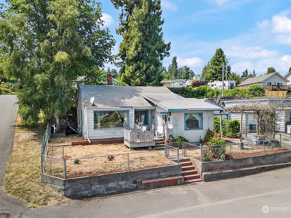 Price Reduced! Nestled in the picturesque Port of Manchester, this 2 Bedroom 1 Bath home on a corner lot is a prime location for access to the public boat launch or enjoying leisurely picnics and beachcombing along the waterfront at Pomeroy Park. Partial views of the Seattle skyline and tranquil Puget Sound create a serene backdrop to morning coffee or BBQ on the deck. The unique mosaic sea creatures in the counter tops add a touch of whimsy and the hard wood floors lend warmth and elegance. While the home does need updating the newer gas furnace, detached garage w/ laundry and plenty of storage, great walkability and possible space to expand into the attic this cozy cabin could be your seaside getaway or potentially a destination Airbnb.