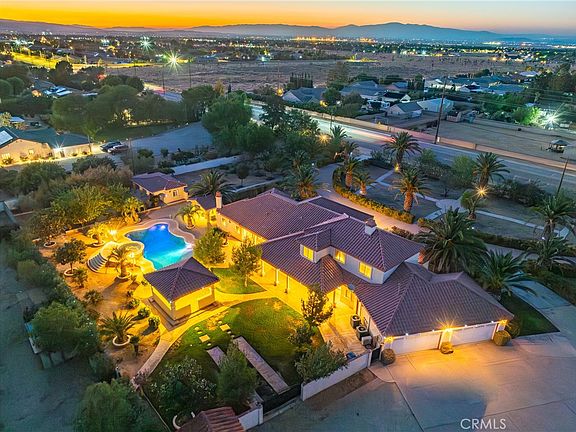 ***LIVE BEAUTIFULLY*** West Palmdale Ranch-Style Oasis Pool & Spa Estate On A Fully Fenced Over 2 Acre Lot, w/ A 4 Car Garage, RV Access (Side RV Access As Well), A Detached Guest Room/ Pool Room w/ A Full Bath, And Mature Palms! Formal Living & Formal Dining Room. The Chefs Kitchen Features Granite Countertops, Convection Oven, Built-In Microwave, An Island, Upgraded Dishwasher, Ample Lighting And Plenty Of Cabinetry. Have A Theatre At Your Home w/ The Spacious Family Room That Features A Built-In Entertainment System w/ Surround Sound. Downstairs Primary Suite Showcases A Private Fireplace, Speakers, & Double Crown Molding. The Primary Bath Offers A Step Up Therapy Jetted Tub, A Stone Enclosed Shower w/ A Rain Shower Head, Dual Vanities, & A HUGE Walk-In Closet. The Executive Office Is Adjacent To The Family Room & Has Built In Shelving & Granite Counters. The Enormous Oasis Pool & Spa Backyard Is Perfect For Entertaining Friends, Family & Loved Ones. It Includes An Impressive Gazebo/ Cabana w/ Electricity & Natural Gas Hookups, A Covered Patio, & An Additional Pool Room/ Guest Room. Don't Forget The Expansive 4 Car Garage w/ Built-In Cabinetry & Shelving! Centrally Located In The Heart Of Town And Just Minutes To Everything, This Ranch-Estate Is Truly A MUST See!