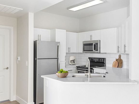 - Exterior features: Barbecue, Business Center, Garages Available, High Ceilings, LED Light Fixtures, Linen Closets, Newly Renovated Interior Finishes, Package Receiving, Pet Park, Preinstalled WiFi with 1st Month Free from Cox, Quartz Countertops*, Short Term Lease, Stainless Steel Kitchen Appliances*, Upgraded White Cabinetry*, Wood-Style Flooring*