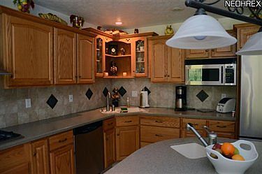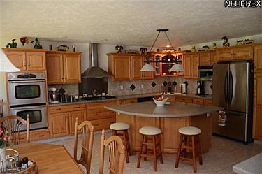 Rare North Perry find with Lake Erie beach access! Master BR, Guest suite plus 2 more bedrooms. 3.5 total baths. Huge great room with vaulted ceilings and fireplace. Dream kitchen with KraftMaid cabinets, Corian countertops, ceramic flooring and wall accent, pantry, buffet, desk, counter seating and appliances. Formal living room, office, sunroom. 2nd floor laundry. Full basement. Large deck. Two story shed. North Perry amenities include water, sewer, trash and cable TV, marina, tennis courts and pool.