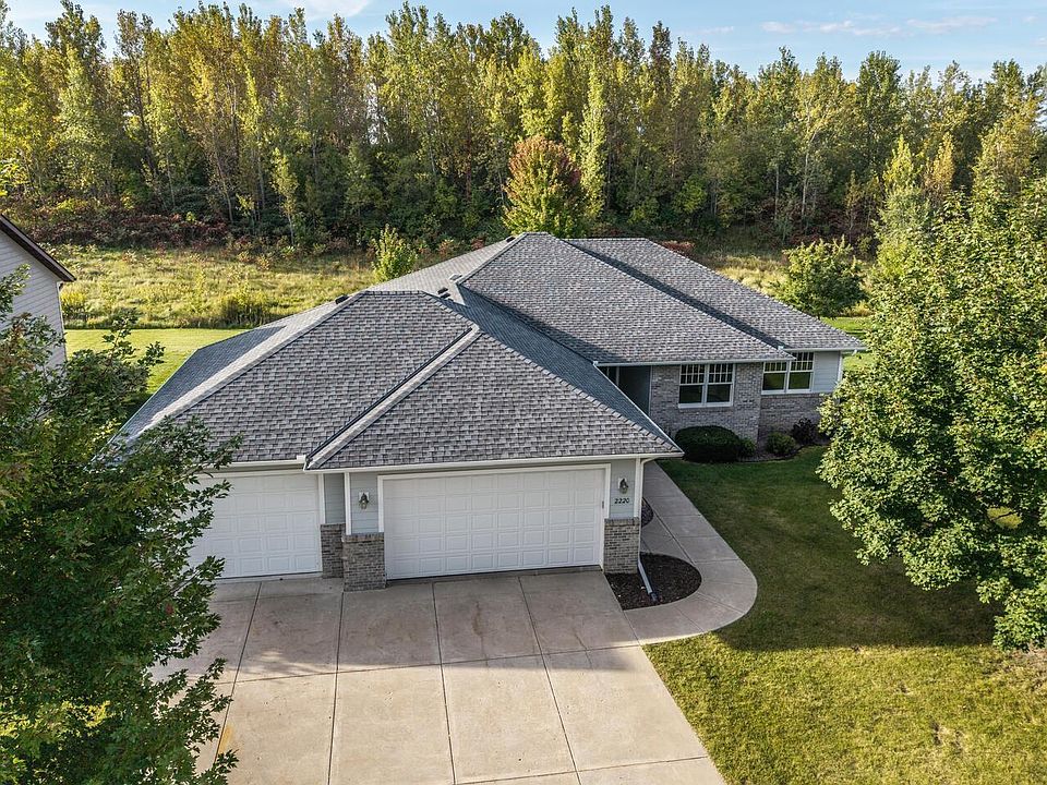 Welcome to this beautifully updated Northfield rambler offering over 3,000 finished square feet, 4 bedrooms, and 3 bathrooms. From the moment you arrive, the charming front porch and manicured landscaping set the tone for a warm welcome. This home was built in 2005 by Jerry Bothun- a local and reputable builder. Not only is this home stunning on the outside, but the strong bones provide a structure and framework for future generations to continue to enjoy the home! Brand new paint and LVP flooring on the main and new carpet in the basement. Newer roof. Pre-inspected. Inside, large windows fill the home with natural light, showcasing the spacious living room with a two-sided gas fireplace that seamlessly connects to the kitchen. The kitchen features stainless steel appliances, granite countertops, and a picture-perfect window overlooking the backyard. A formal dining room provides the perfect setting for gatherings, while the main-level laundry with extra shelving adds everyday convenience. The main floor hosts three bedrooms, including a spacious primary suite with a walk-in closet, a private full bath, and dual sinks. Another full bathroom completes this level. Downstairs, enjoy a generous recreation room with built-in storage. The pool table is included with the sale of the home! The lower level also includes a fourth bedroom, and an additional bathroom—ideal for guests or extended living. Step outside to the deck and patio to take in the wooded views—perfect for entertaining or unwinding. Conveniently located on the edge of town near schools, parks, shopping, dining, and more, this move-in-ready home blends style, comfort, and functionality.