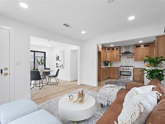 This beautifully renovated Santa Ana home showcases a bright, open floor plan filled with natural light and stylish finishes throughout. The brand-new kitchen is a chef’s dream, featuring shaker cabinets, quartz counters, custom marble backsplash, stainless steel appliances, and brushed brass hardware.