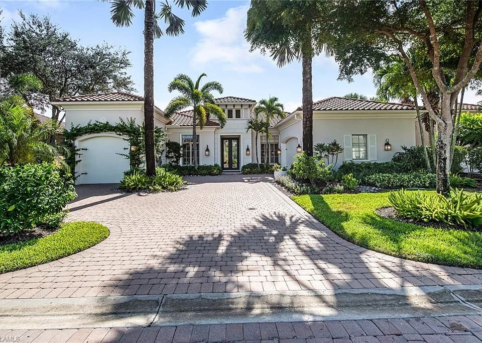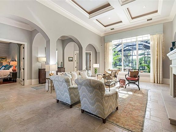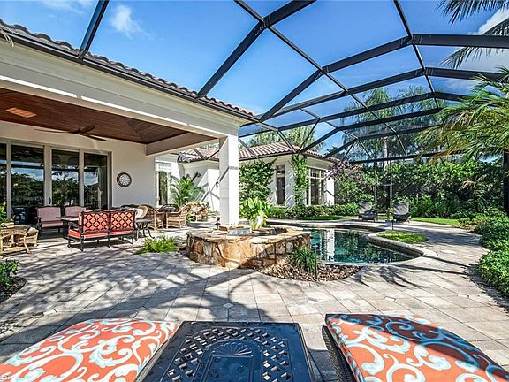 Immediately upon entering this home you will be met with serene wide lake views in the maintenance free enclave of Miramonte at Grey Oaks. With four bedrooms and a den, this is the perfect home to entertain guests and family. Large, inviting kitchen includes oversized island with barstool seating, extra cabinet space, walk-in pantry, and Viking appliances. The home offers ample living space in the living and family rooms. The considerably sized master bedroom has hardwood flooring, custom tray ceilings and large windows overlooking the lake. Master bathroom with travertine floors, includes dual sinks, vanity, large walk-in shower and jetted tub. All three guest bedrooms are ensuite. The expansive lanai includes covered outdoor living, a spillover water feature, with pool and spa overlooking the long lake view. Full list of features available. Grey Oaks offers three championship golf courses, two clubhouses, state of the art fitness center, and golf learning facility, along with six lighted tennis courts, pickleball courts, and bocce center. The world class resort style pool provides the setting for outdoor dining and indoor/outdoor bar at the Pool Cafe.