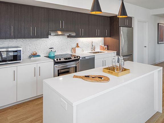 Welcome to Rivage, a pet-friendly community overlooking the Willamette River, with spacious and contemporary studio, one, and two bedroom homes. Our smoke-free Waterfront apartments in Portland are beautifully designed, featuring large windows with views of the water and city, quartz countertops, two-toned cabinetry, walk-in closets, private balconies or patios, and Energy Star appliances that include full-size washer and dryer sets. Our amenity-rich community includes multiple courtyards, a fully-equipped fitness center, a yoga/Pilates studio, a rooftop deck with views of the surrounding scenery, and a convenient community lounge offering Wi-Fi, game tables, TVs, and more. We offer flexible touring options - call or text us today to schedule yours!