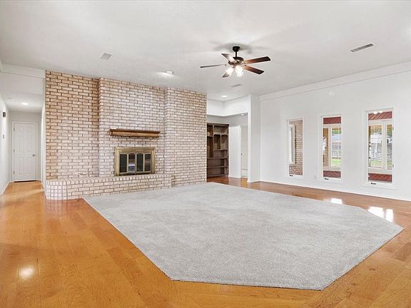 Welcome to your dream home! This stunning new listing boasts three spacious bedrooms and two bathrooms, with an additional sunroom that bathes the home in natural light. As you step inside, you'll be captivated by the charm of the large living room featuring a charming brick fireplace, perfect for cozy evenings with loved ones. The kitchen has plenty of room and counter space, an island with storage, good size eating area and a separate dining area. The master suite offers his and her vanities, a separate tub, a walk-in shower, and a great sized walk-in closet. This home also has a brand-new AC unit installed and a dishwasher in 2023. The stone-coated metal roof not only adds durability but also enhances the home's curb appeal. Step outside to a spacious backyard, complete with a covered patio for outdoor entertaining and three storage sheds, providing ample space for all your storage needs. Whether you're looking to relax or entertain, this home has it all!