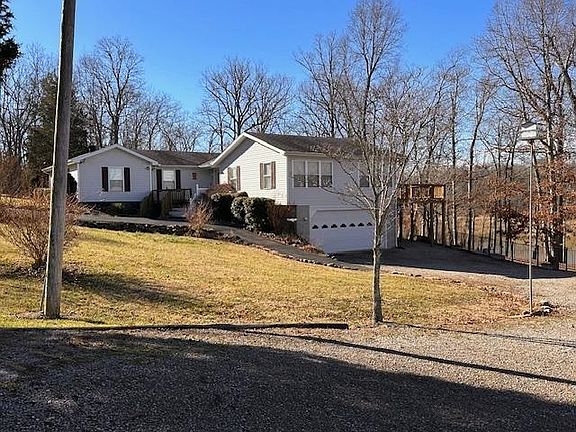 One-Of-A-Kind Rough River Lakefront property! Almost 2 acres of private walk-to-the-water paradise. Situated on one of the most desirable areas of the lake, this property captures panoramic water views from Sandy Beach to the Cliffs at Cave Creek and there is water in the lake year-round! The 2 assigned boat docks are just a bonus! The park-like setting offers terrific outdoor spaces with expansive sun deck, screened porch, covered lower porch, a fire pit with swing and benches and open spaces to throw a football or play cornhole. There are 2 garages for all your toys and there's even a RV carport with power and water that could easily be enclosed for all your storage needs. The second garage with 2 garage doors could be remodeled for a fabulous party barn. There is so much potential!! The home is just as inviting. It offers 3-4 bedrooms and 2 1/4 baths. It easily sleeps 20 and for your indoor entertainment it has a huge rec room with pool table and fireplace. The main level also has an open concept family room/kitchen, 3 dining areas 3 bedrooms and 2 baths. The primary bedroom has its own full bath with a laundry room and there is a second laundry in the basement. The walkout basement is set up with double bunk beds, a sitting area, and another open bedroom that could easily be made to a private room. This is a special property with tons of possibilities and has so much to offer. It must be seen in person to fully appreciate its specialties. The 4 lots could be easily divided. The 2 boat docks transfer with Corps of Engineers approval. Owner will offer favorable financing. Call today for more details.
