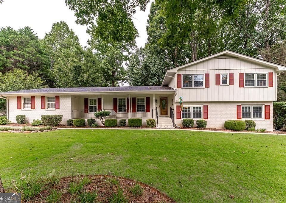 Set on a beautifully landscaped lot in the welcoming cul-de-sac enclave of Peachtree North, this delightful home blends comfort, style, and functionality. A charming front porch invites you into a flowing open floor plan accented by gleaming hardwood floors, plantation shutters, and classic wood blinds. The dining room opens to a bright living room and inviting family room, anchored by a handsome brick fireplace. A cheerful sunroom and a spacious covered patio create wonderful spots to relax or entertain, all while overlooking a gorgeous, private, and fenced backyard framed by mature trees and lush plantings, this serene retreat is ideal for entertaining and family life. A versatile storage shed adds charm and convenience. The updated gourmet kitchen is both stylish and practical, showcasing freshly painted cabinetry, gleaming granite countertops, subway tile backsplash, stainless steel appliances including a gas range, and custom pull-out pantry shelves. A sunny breakfast room and oversized laundry room with backyard access add everyday convenience. Upstairs, the serene primary suite offers a comfortable retreat with an attached bath featuring a double vanity, while two additional bedrooms share a nicely updated hall bath. The lower level is a standout, offering a fully equipped in-law suite with its own private entrance. Complete with a second kitchen, generous living room, spacious bedroom with huge walk-in closet, and private full bath, it provides a perfect setting for extended family, guests, or multi-generational living. Ideally located in the desirable Dunwoody school district, this home offers the best of convenience and community. Walk to the JCC and nearby places of worship, and enjoy close proximity to shopping, dining, and major interstates-all with easy access to the very best of Atlanta.