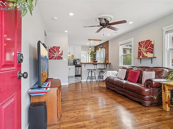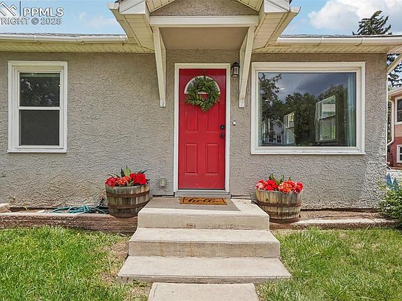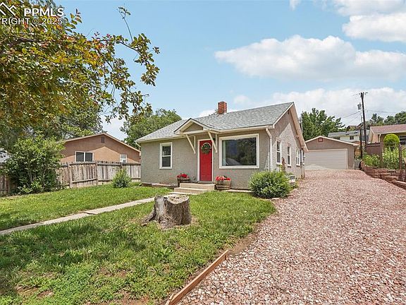 Welcome to this picture-perfect bungalow, where classic charm meets cozy comfort. The cheerful red front door and inviting curb appeal set the tone, while a bright interior with a large picture window fills the living space with natural light. Inside, enjoy tasteful updates and fresh, modern style throughout. Gleaming hardwood floors flow throughout, creating a warm and inviting atmosphere from the moment you enter. The open living room is stylish and cozy—perfect for relaxing or entertaining—with sleek finishes and on-trend design elements that make the space feel both contemporary and timeless. The kitchen is a true showstopper—bright, functional, and full of personality. With updated cabinetry, chic tile work, and modern fixtures, it’s the perfect blend of form and function. Both bedrooms are light-filled and comfortable, offering the ideal retreat at the end of the day. The home sits on a spacious lot, offering plenty of room to garden, entertain, or simply relax in your private, fenced yard. Ideal for first-time buyers, down-sizers, or investors, this home features timeless exterior finishes, central A/C, and a long driveway leading to a detached two-car garage for off-street parking. Perfectly located just minutes from Old Colorado City, downtown, and I-25 access, you’ll enjoy the convenience of city living with the peaceful feel of a quiet neighborhood.
