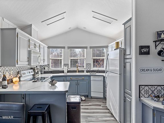 This 2 bed, 2 bath updated home is a must see. Upgrades include, new toilets, fans, newer carpet, paint (inside and out), flooring, Pella dual pane windows, 2 water heaters, no skirting, paved driveway, trex deck in the front and newer deck in the back, washer & dryer inside, sun shades, storage shed with power and work bench, central heat & AC with smart, wifi thermostat so you can monitor your home from the valley and so much more. Seller is a licensed Realtor in the state of AZ.