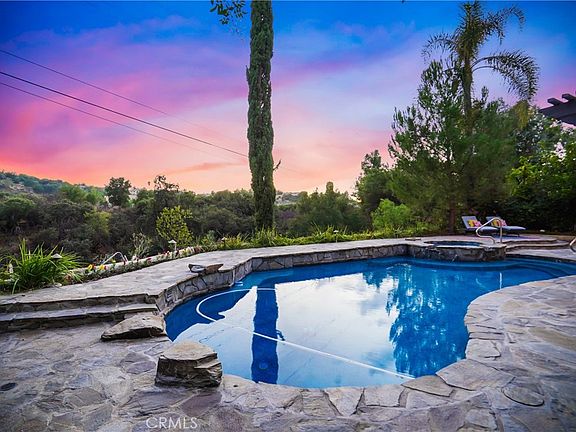Welcome to the private gated community of Braewood located in Calabasas!! This home is a rare gem, nestled at the end of a cul-de-sac and boasts 180 degree stunning canyon views!!! Lush landscaping and fresh flowers complete the impressive curb appeal. Inside, find soaring high ceilings, fresh white paint, designer lighting+++. Enjoy the fabulous layout- an expansive formal living room and an adjacent dining room. A gorgeous eat-in kitchen featuring stone counter tops, stainless steel appliances, refinished white cabinetry and a breakfast room, all overlooking the family room complete with wet bar and a cozy fireplace. Upstairs find a primary en-suite bedroom fit for a queen, vaulted ceilings, a separate sitting area, wood floors, large private balcony with direct access to the pool & spa, and a fantastic walk-in closet. You will also find 2 additional bedrooms and a spacious loft (4th bedroom, office, playroom, library or gym). All this overlooks "The Dream" yard!!! With its separate staircase leading directly to the primary suite, this yard is jaw dropping! Perfect for entertaining, this beauty showcases a large sparkling swimming pool/spa with a unique glass bead pool finish completed just a year ago, a built-in BBQ, covered patio, plenty of lounge space and stunning VIEWS! This home also features a spacious 3 car garage. All this located in the award winning Las Virgenes school district and is walking distance from the community park as well as the located near boutiques, restaurants and Gelsons. Don't miss out!