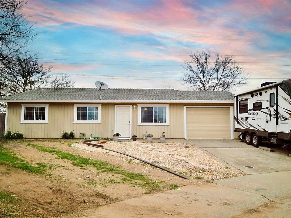 Hard to find 4 bedroom, 3 bath single story home at the end of a cul-de-sac with RV parking. The kitchen has Corian countertops and stainless steel appliances and a new built-in microwave. The refrigerator is included. The large backyard has a covered back patio, koi pond, chicken coop and tin shed. A little bit of country near everything including the Cherry Island Golf Course and Gibson Ranch Park. Come put your personal touch on this cute ranch in a close-knit neighborhood.