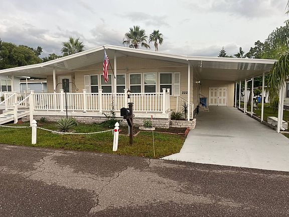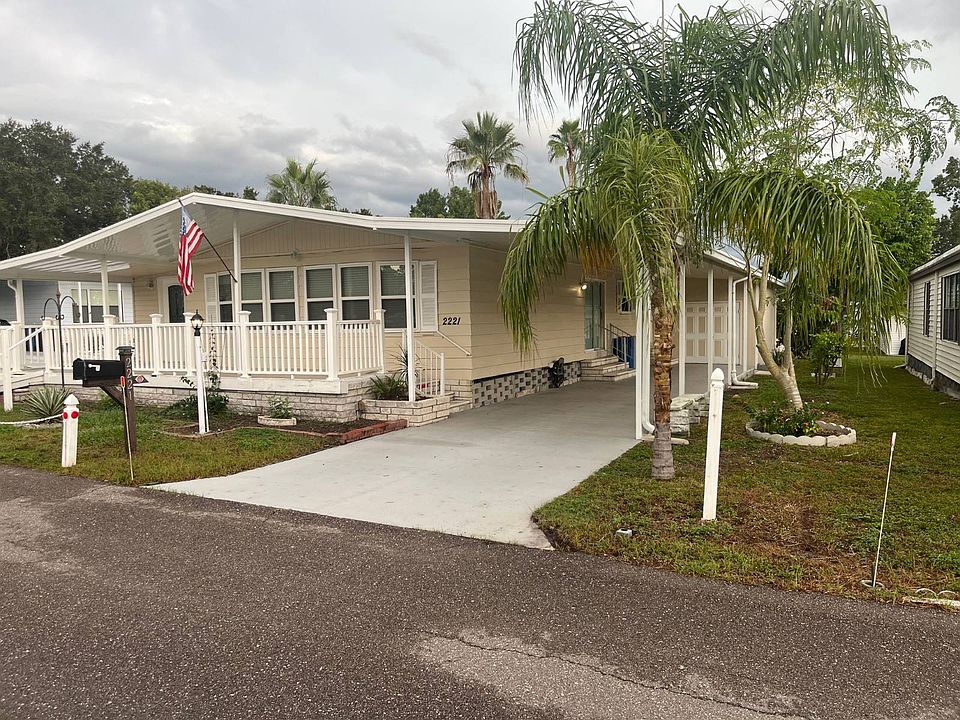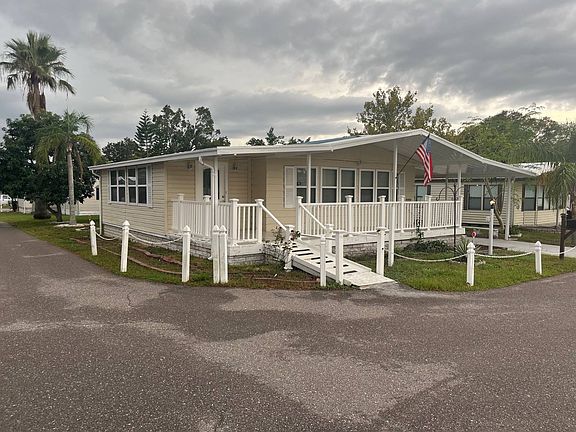 This home is located within the Featherock Mobile Home Community in Eastern Hillsborough County, between Tampa and Plant City in the area of SR60 and Valrico Road. This home is close to shopping, churches and about an hour from the central Florida theme parks and the gulf beaches. This is a large home and features two Primary Suites with a split plan, and each with an attached bathroom. This home also boasts over 1600 square feet, including a large sunroom. The kitchen is in the center of the home and features double ovens, and an island with stove top. There is also a nice bar. The dining room features a built-in hutch and room for a large table. Adjacent to the kitchen is the large great room which exits onto the large sunroom. The home has ceramic tile flooring throughout. One of the Primary Ensuites features a soaker tub and separate shower, while the other has a walk-in shower. There are handicap rails conveniently placed throughout the home for added safety. The laundry room is located just off the kitchen and houses the washer and dryer and cabinetry for your storage needs. On the exterior of the home there is a carport with room for at least two vehicles, with room to spare. At the end of the carport is a large shed with shelving, and with double doors to accommodate a golf cart. Across the front of the home is a covered porch with room for sitting. The home has a metal roof which giving the home many years of safety and security. The home has a lot of potential, and is priced to sell. The seller is highly motivated so don't let it pass you by with seeing it and making an offer.