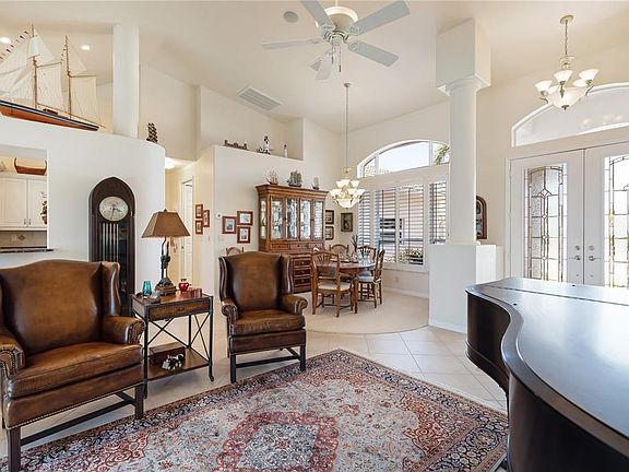 LOCATION, LOCATION, LOCATION! Is your boat looking for a beautiful, waterfront home w/an extended dock, 80ft of seawall & quick sailboat access to Charlotte Harbor? Consider this 3 bed/3 bath, custom-built home in Punta Gorda Isles is located just 2 canals in from Charlotte Harbor offering almost instant access to open water from your backyard. Thanks to the southern rear exposure, the lanai is bathed in sunlight throughout the day. 296 sq ft of covered area on the lanai allows for shaded area as well - the best of both worlds. Inside, the home offers a formal living room & dining room plus a separate family room. Almost every room in the home features a pool and/or canal view. Architectural details include soaring cathedral ceilings, arched transom windows, mix of tile & carpet flooring throughout plus etched glass transom windows between several rooms & in-wall sound system. The kitchen features granite counters, ample cabinet & counter space including a bar area w/wine refrigerator & angled breakfast bar. Bathrooms & kitchen feature Grohe fixtures. The kitchen also offers a KitchenAid hot water dispenser. The adjacent breakfast nook has a mitered glass bay window overlooking the pool & canal. The family room boasts large, picture windows allowing you to truly enjoy the canal view. The master suite has TWO master baths - one doubling as a pool bath w/access to the lanai plus walk-out access to the lanai & two walk-in closets one w/solid cherry built-ins. The primary master bath has split sinks, a garden tub, walk-in shower & private WC. While the 2nd master bath/pool bath has a walk-in tiled shower w/ceramic flower embedded in tilework. The split bedroom layout features two, large guest rooms that share a guest bath. One guest room has a solid hickory built-in office suite plus a hidden queen-sized Murphy bed w/built-in end tables. Outside, the lanai offers a brick paver deck w/in-ground, heated pool that features inlaid ceramic scenes. A 45ft, two-tiered, concrete dock is steps from the back door. Water & electric hook-ups are available dockside. Set off on your latest adventure from your own backyard & start enjoying some of the best fishing & boating in SW Florida. Other amenities include hurricane protections, brick paver drive leading to the attached, 2-car garage w/storage cabinets, 9-zone sprinkler system, dual zone HVAC (new in 2020), timed 120v outlets on facia for Christmas or security lighting, water softener & meticulously-maintained tropical landscaping. Home is just minutes by boat or car to Isles Yacht Club. Make an appointment today - you won't be disappointed.