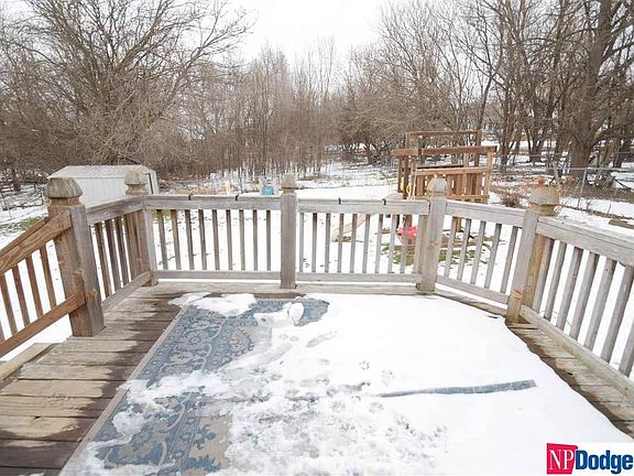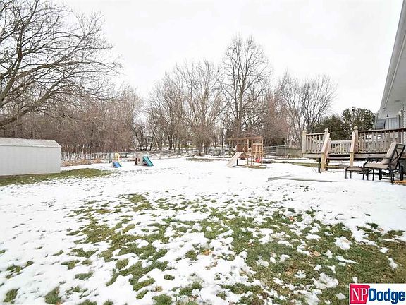 No Backyard Neighbors on this spacious lot in Millard School District! Convenient Autumn Heights location with walking trails, park, pavilion, ball field and basketball court. Nestled in a tree-lined neighborhood close to all the amenities! Fully fenced yard with storage shed, patio, deck and play equipment backing to mature trees. Eat-in Kitchen with breakfast bar, granite counters, tile backsplash, flat-top stove. Updated bathrooms with tile showers & floors. Media Room with wet bar and bonus space. Roof new in 2013. HVAC new in 2017. Freshly painted interior. Vinyl siding & brick exterior with patio & landscaping in front. All appliances included. One-year 2-10 Home Warranty provided by Seller.