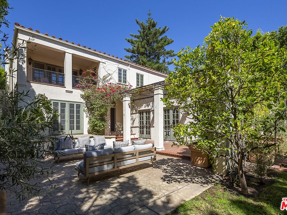 Elegant Spanish Revival in prime Los Feliz, north of the boulevard. Sited on a deep flat lot, complete privacy is assured with mature hedging on all four sides. Gated entry leads to a porte-cochre and 3-car garage, currently used as a gym and studio. Embassy-sized foyer with a coffered ceiling, tile flooring, and statement curved staircase with fine railing details. A barrel vault ceiling adorns a generous living room. Formal dining room easily seats ten, with a separate breakfast room. Updated modern kitchen with butlers pantry. Woodsy paneled study. Two fireplaces have been converted to gas with ornate hearths and mantels. Main level guest bedroom with en suite bath and secondary staircase. Two primary bedroom suites upstairs, plus three additional bedrooms, all with connecting bathrooms. Abundant storage options within numerous well spaced closets. Turquoise swimming pool with spa. A considerable amount of space adaptable to a variety of living and work-at-home arrangements.
